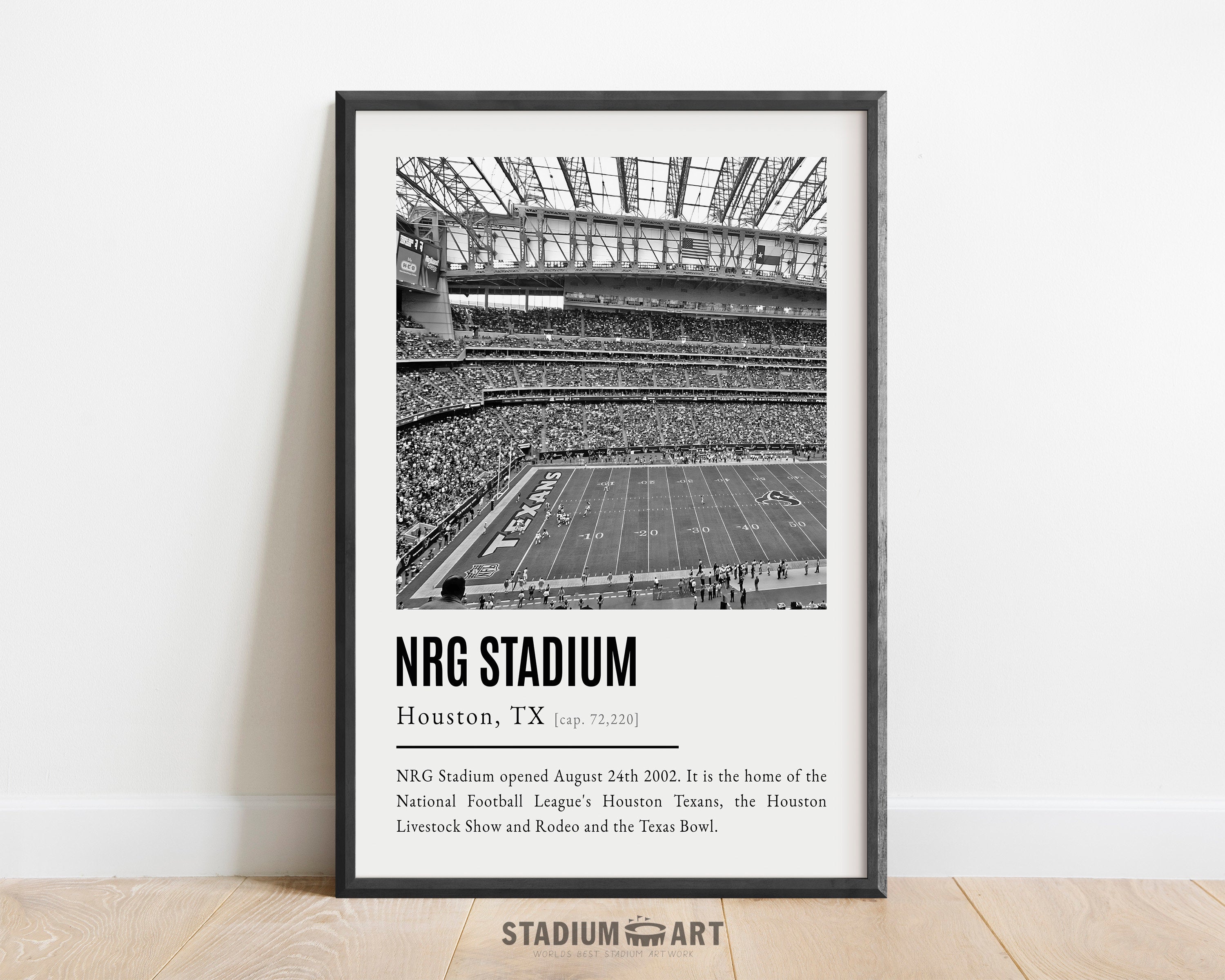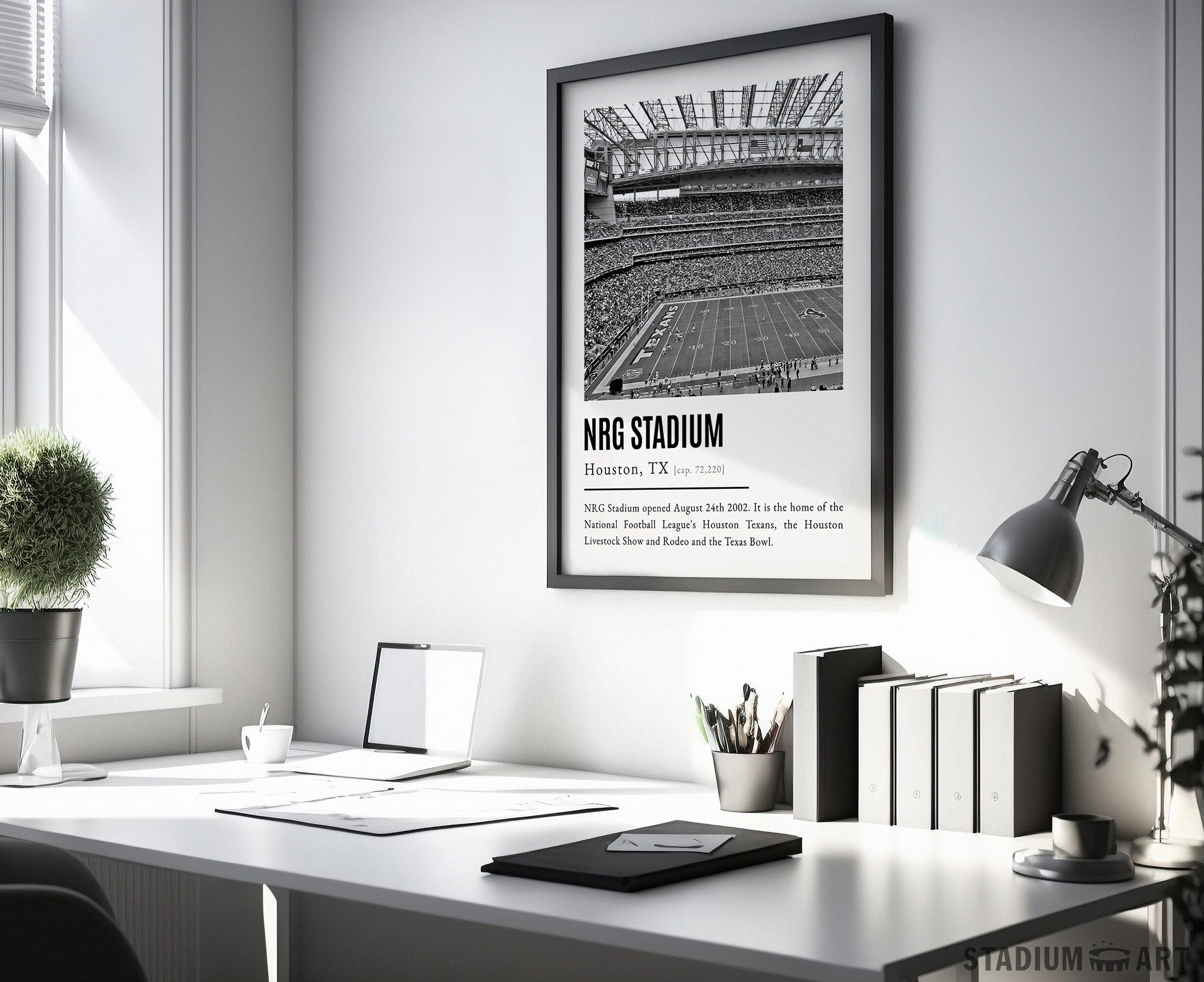 NRG Stadium Print, Houston Texans Poster/Canvas, Seat View, B&W Modern Football Wall Art Decor, Game Day Keepsake