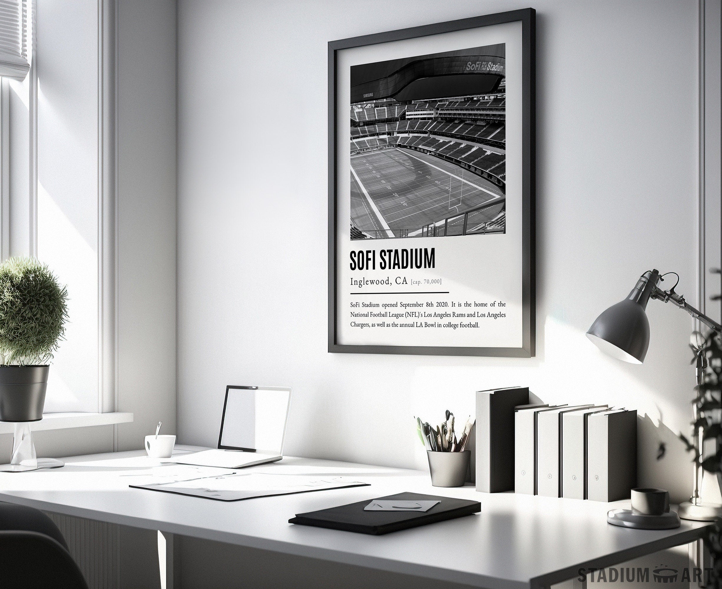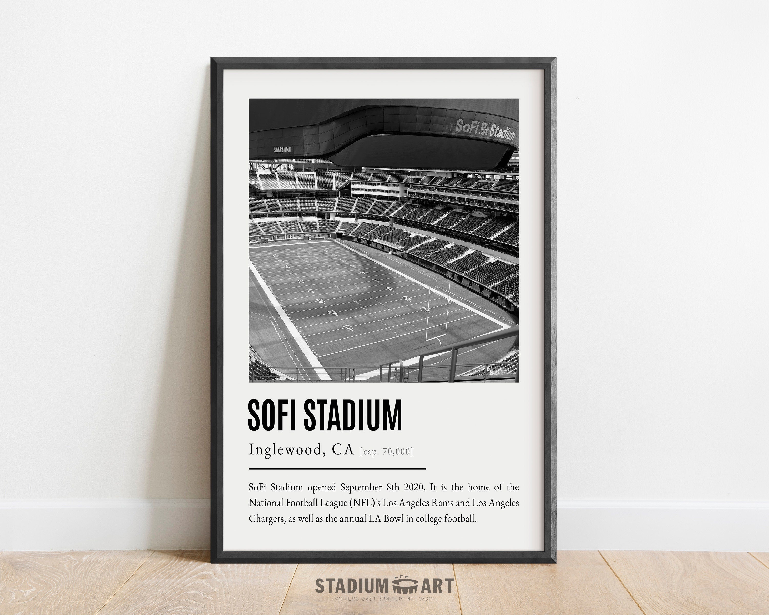 SoFi Stadium Print, Los Angeles Rams/Chargers Poster/Canvas, Seat View, B&W Modern Football Wall Art Decor, Game Day Keepsake