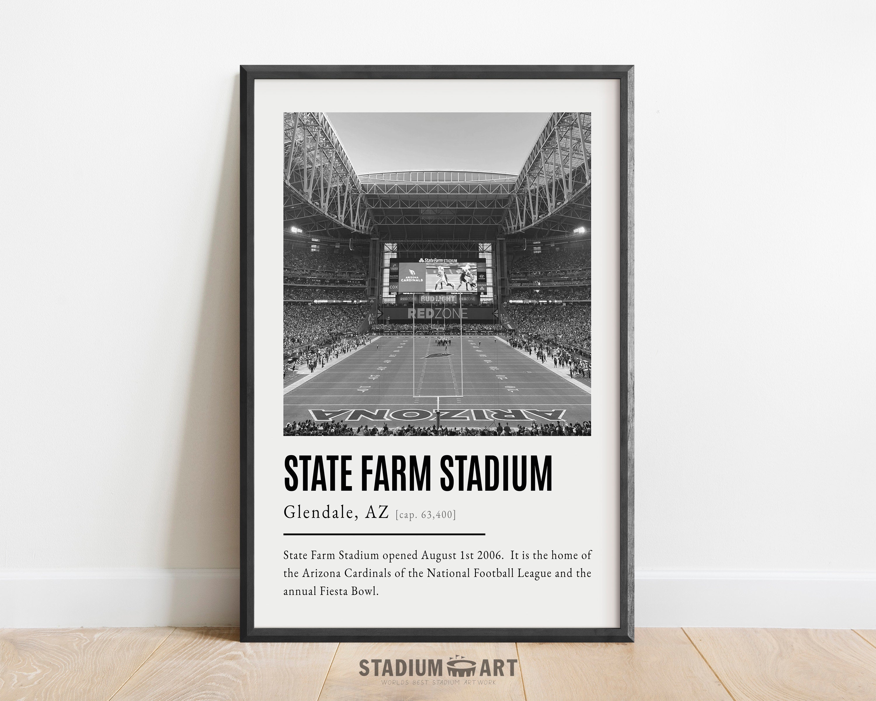 State Farm Stadium Print, Arizona Cardinals Poster/Canvas, Seat View, B&W Modern Football Wall Art Decor, Game Day Keepsake