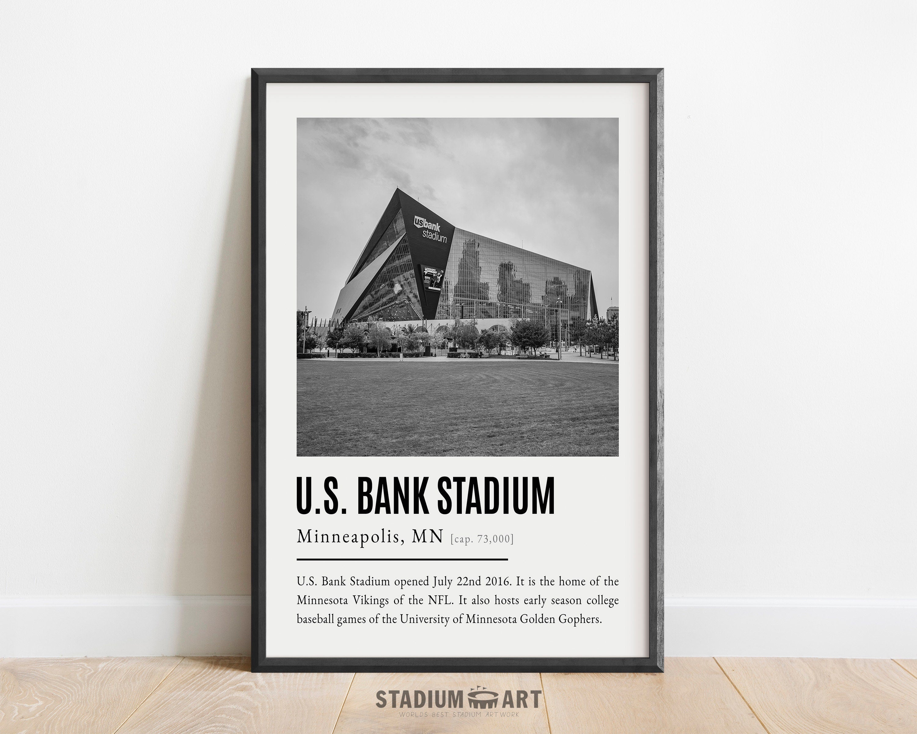 U.S. Bank Stadium Print, Minnesota Vikings Poster/Canvas, Street View, B&W Modern Football Wall Art Decor, Game Day Keepsake