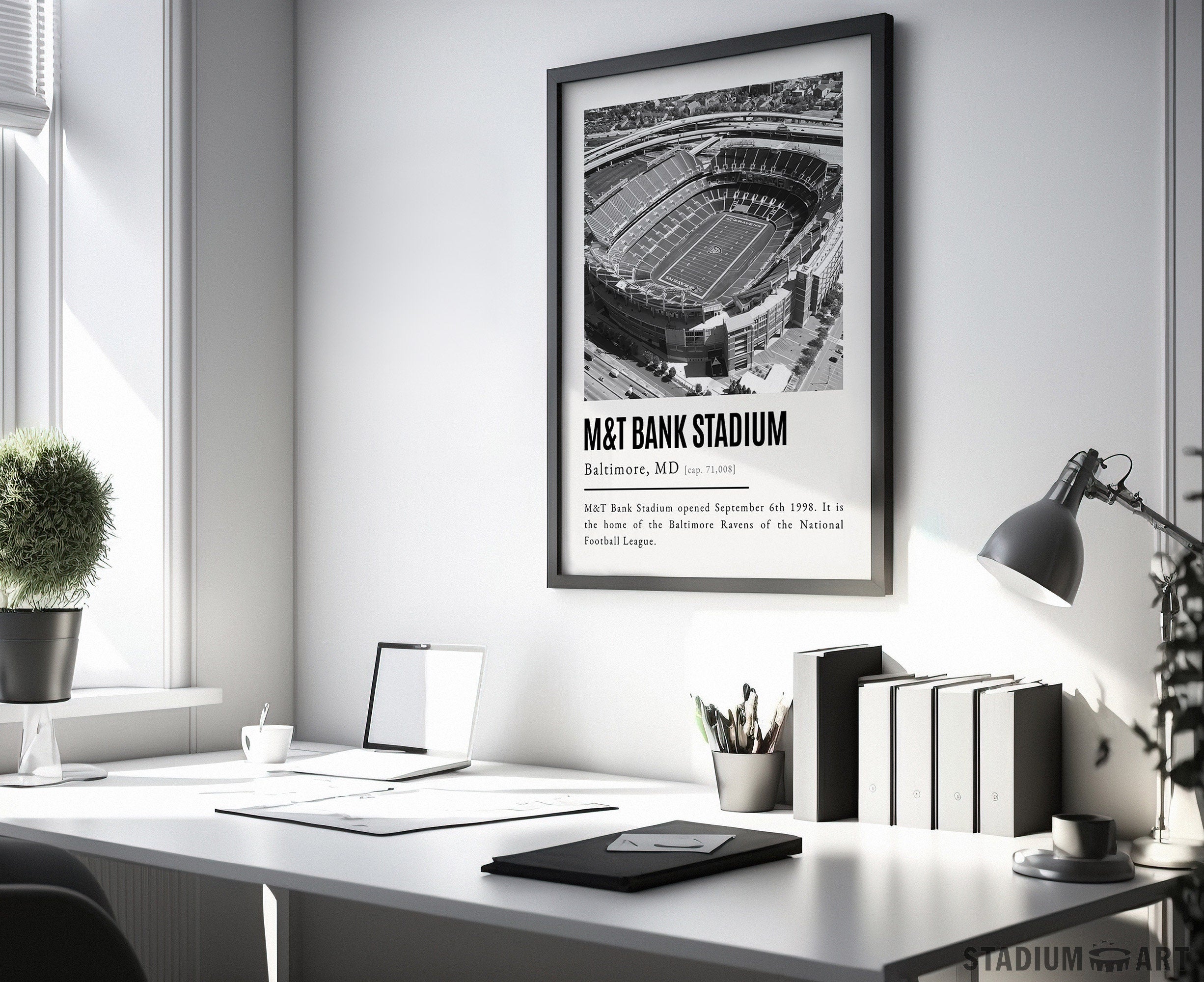 MT Bank Stadium Print, Baltimore Ravens Poster/Canvas, Aerial View, B&W Modern Football Wall Art Decor, Game Day Keepsake
