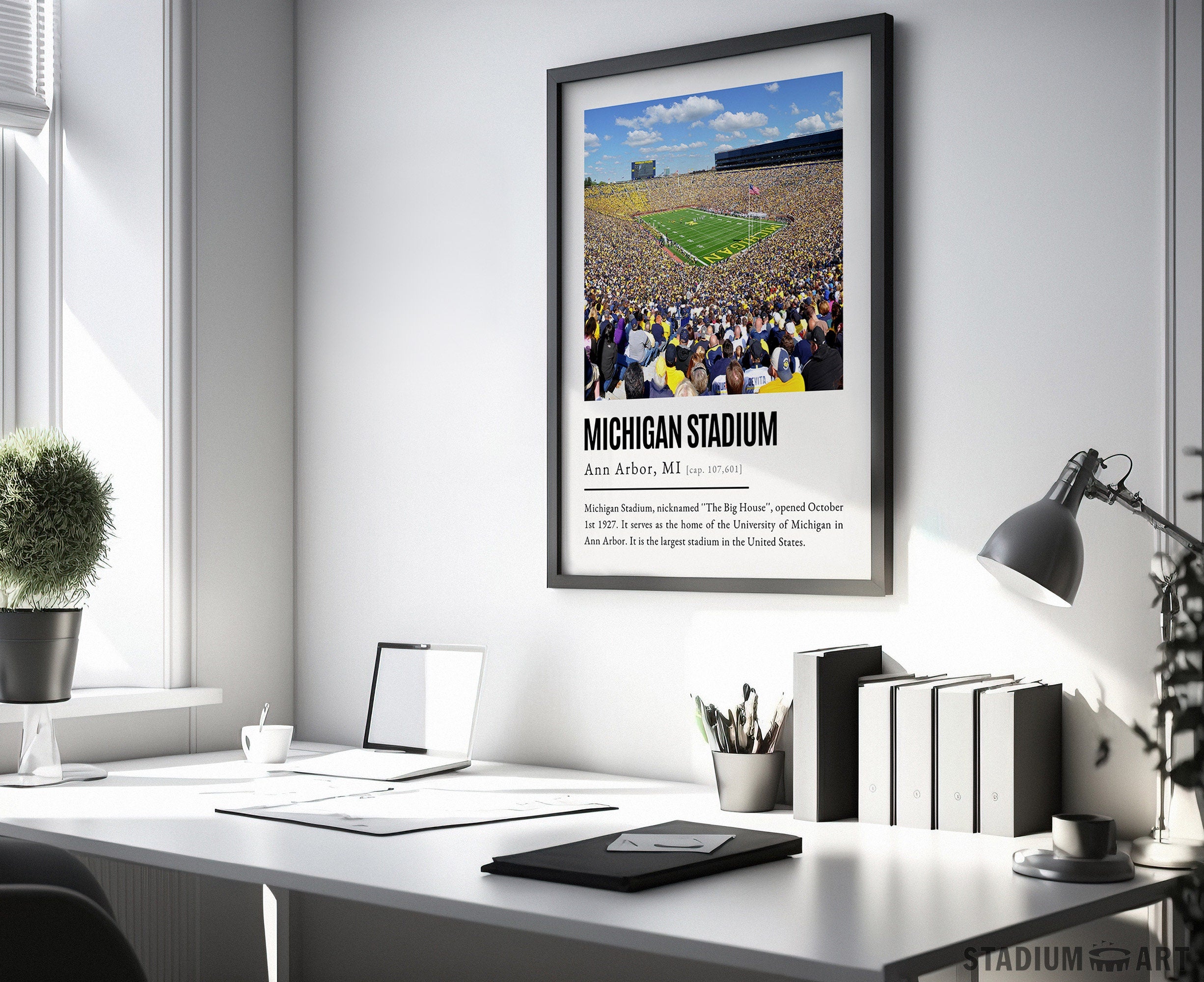 Michigan Stadium Print, Michigan Wolverines Poster/Canvas, Aerial View, Modern Football Wall Art Decor, Game Day Keepsake