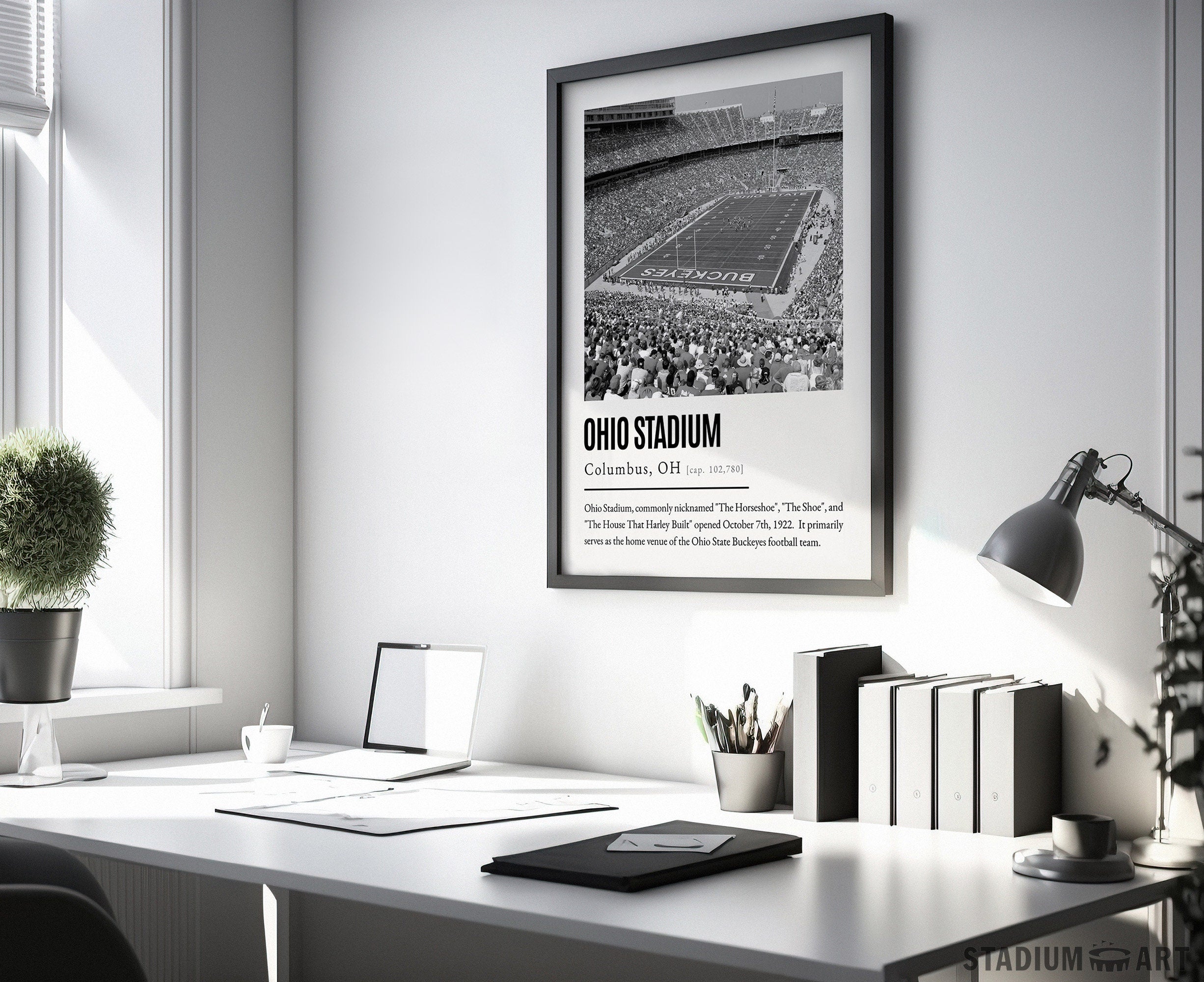 Ohio Stadium Print, Ohio State Buckeyes Poster/Canvas, Seat View, B&W Modern Football Wall Art Decor, Game Day Keepsake
