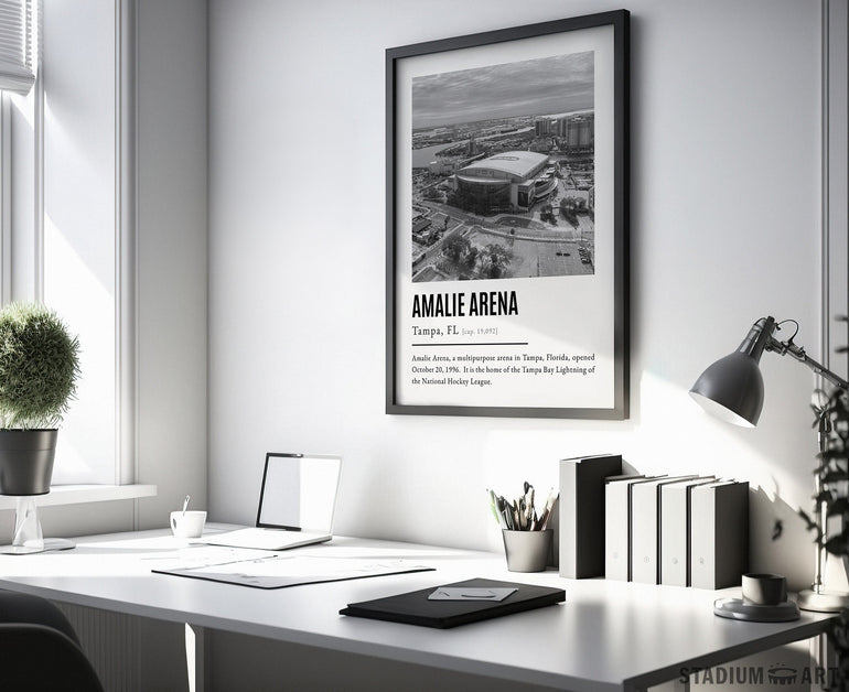 Amalie Arena Print, Tampa Bay Lightning Poster/Canvas, Aerial View, B&W Modern Art, Hockey Wall Art Home Decor, Game Day Keepsake
