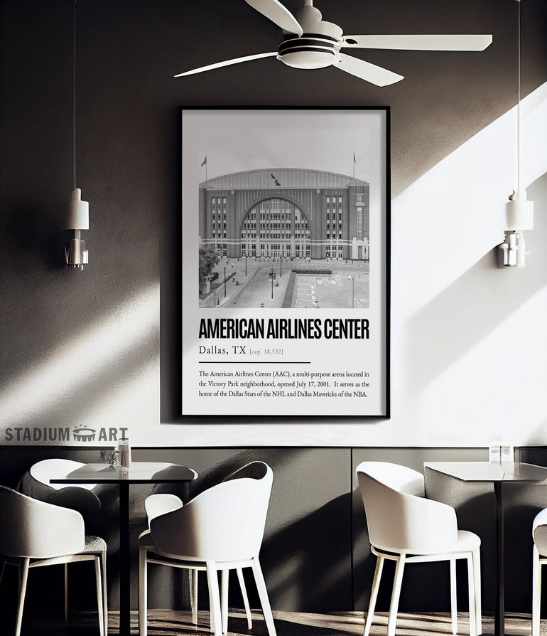 American Airlines Center Print, Dallas Stars Poster/Canvas, Exterior Front View, B&W Modern Art, Hockey Wall Art Decor, Game Day Keepsake