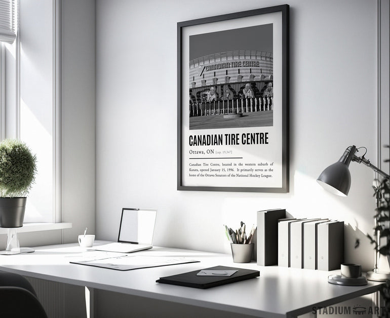 Canadian Tire Centre Print, Ottawa Senators Poster/Canvas, Front View, B&W Modern Art, Hockey Wall Art Decor, Game Day Keepsake