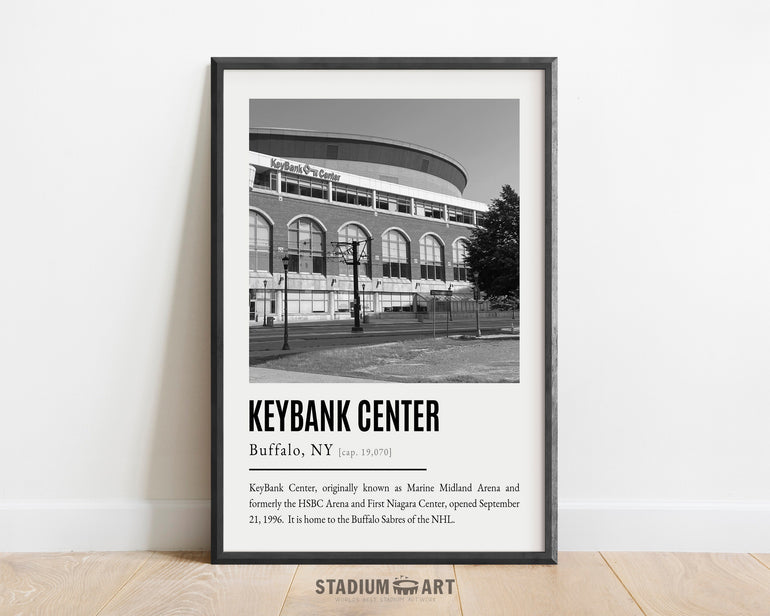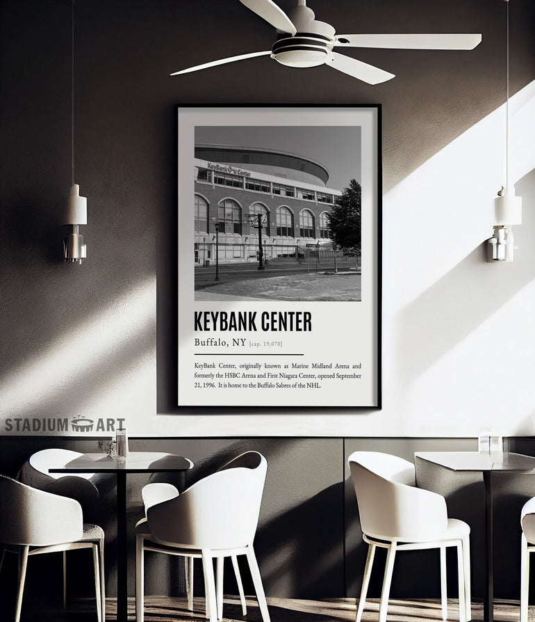 KeyBank Center Print, Buffalo Sabres Poster/Canvas, Exterior Front View, B&W Modern Art, Hockey Wall Art Decor, Game Day Keepsake