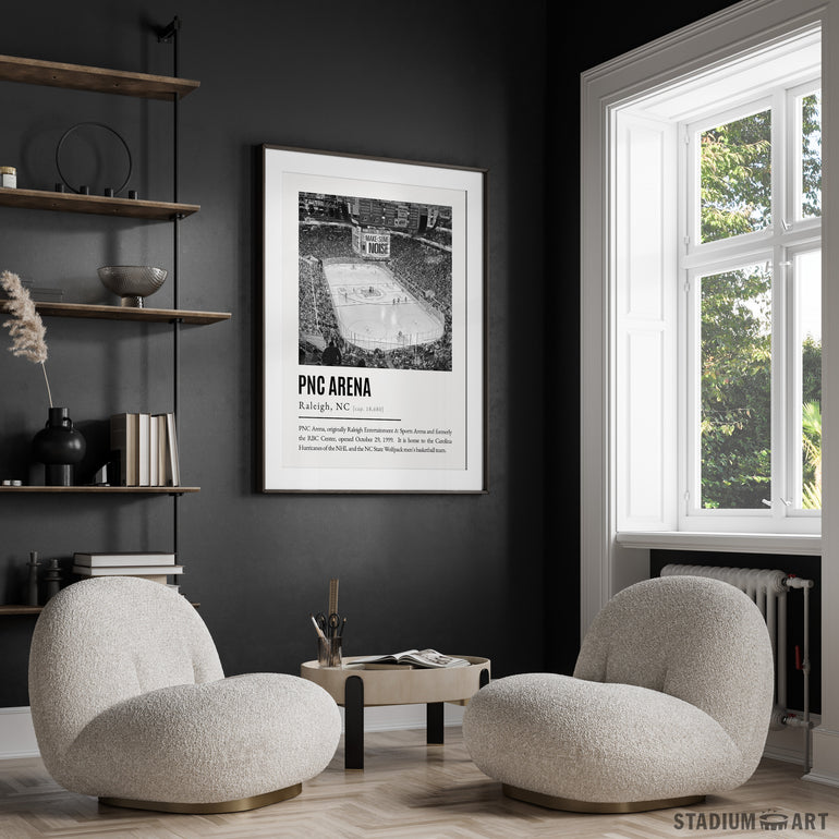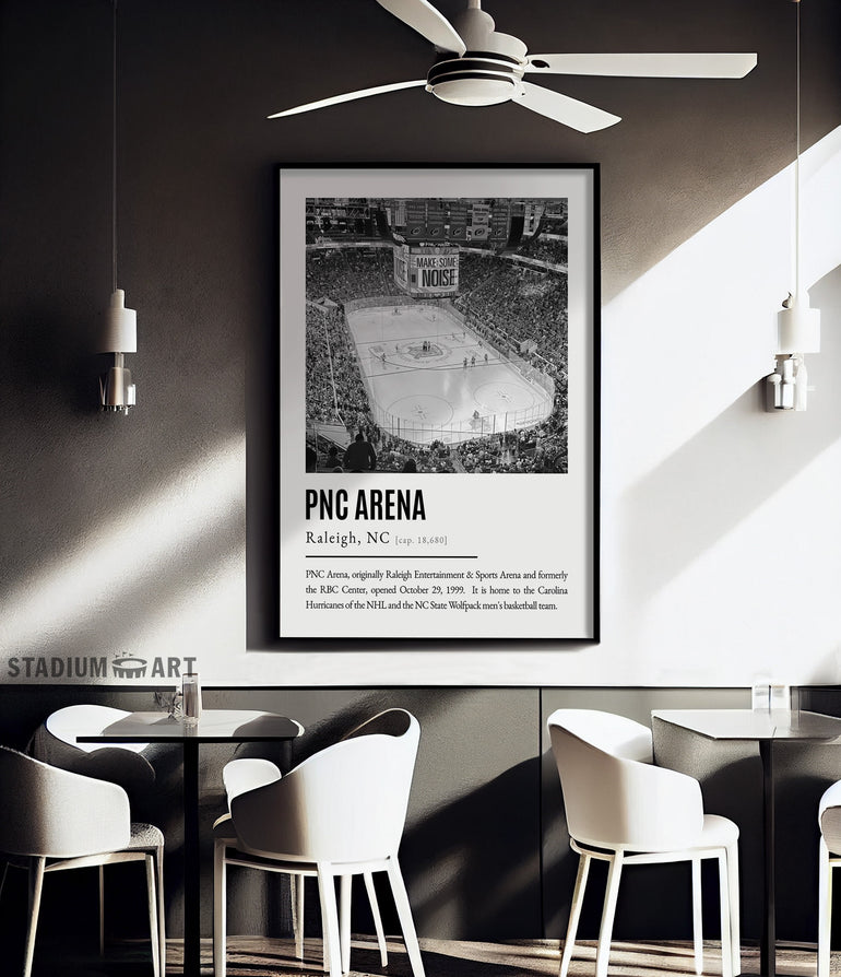 PNC Arena Print, Carolina Hurricanes Poster/Canvas, Seat View, B&W Modern Art, Hockey Wall Art Decor, Game Day Keepsake