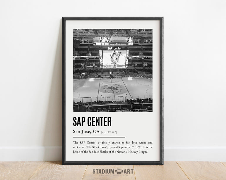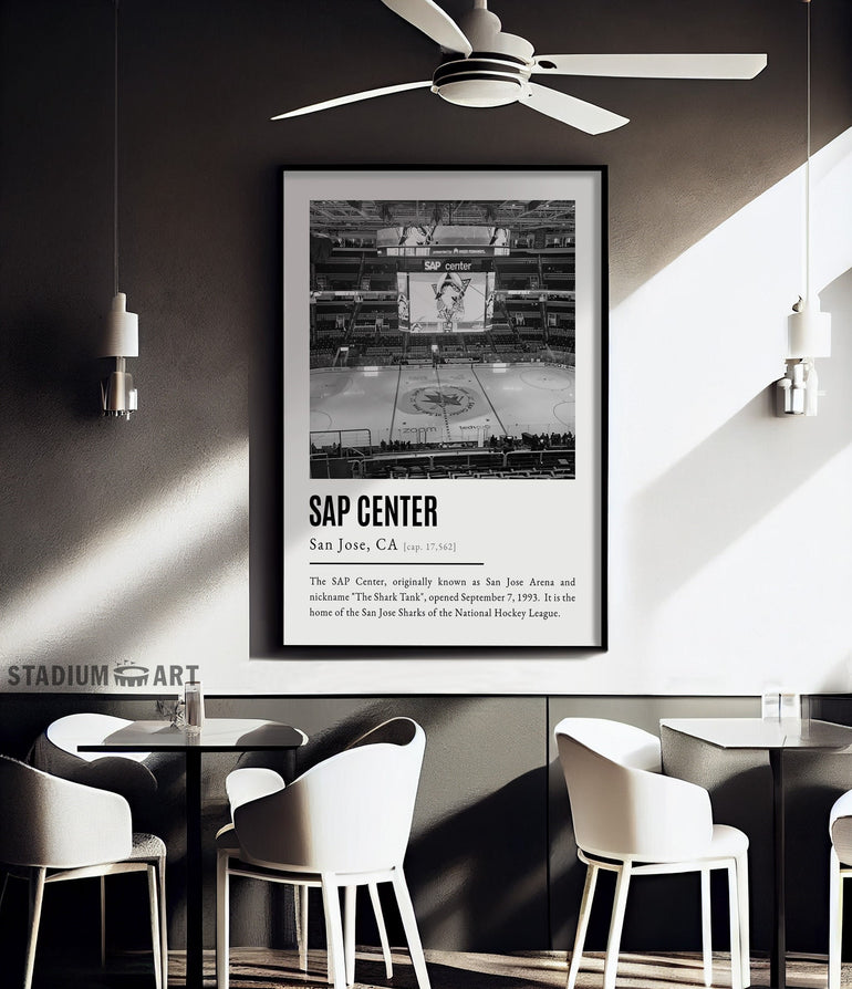 SAP Center Print, San Jose Sharks Poster/Canvas, Seat View, B&W Modern Art, Hockey Wall Art Decor, Game Day Keepsake