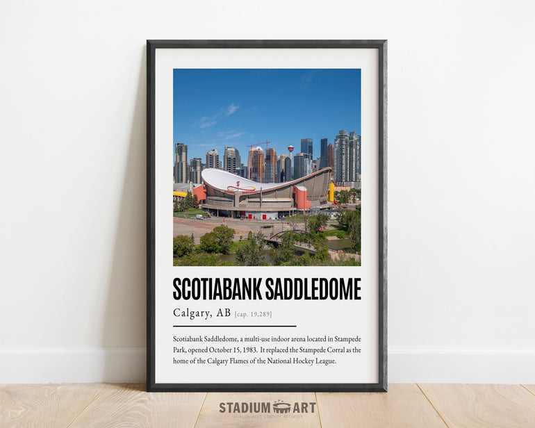 Scotiabank Saddledome is a multi-use indoor arena in Calgary, Alberta, Canada. Located in Stampede Park in the southeast end of downtown Calgary, the Saddledome is home to the Calgary Flames of the National Hockey League (NHL).