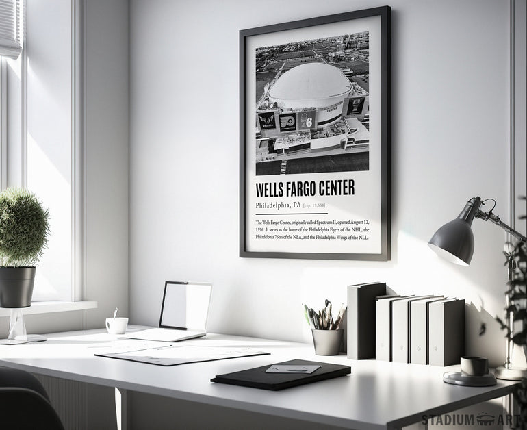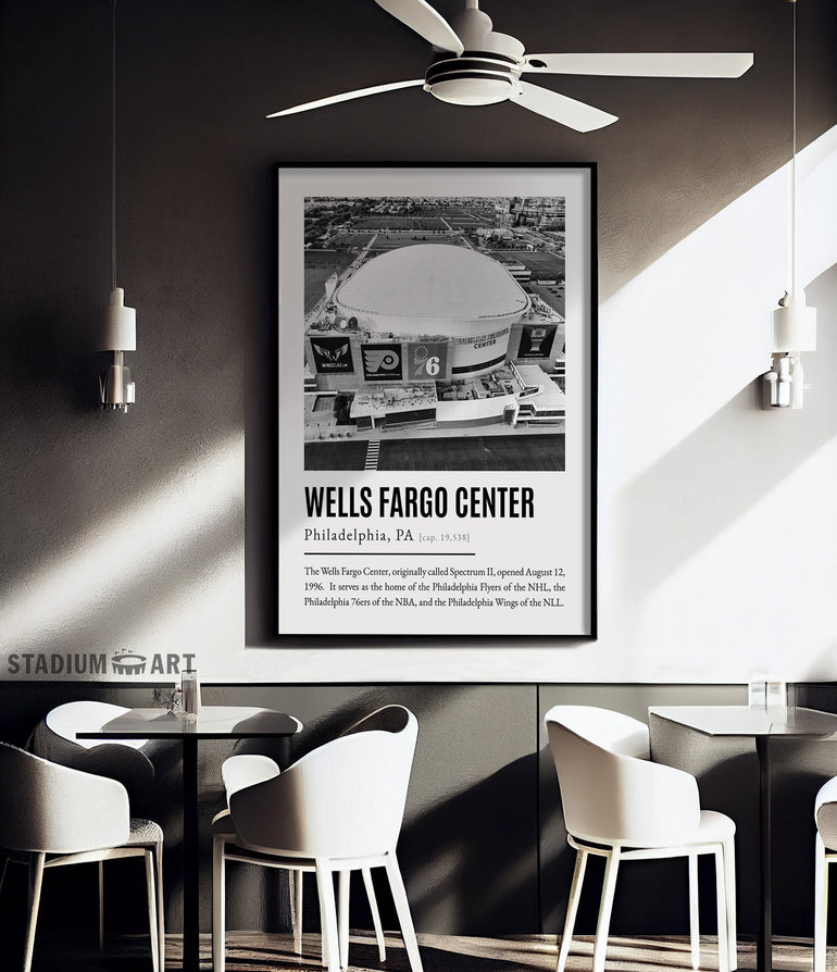 Wells Fargo Center Print, Philadelphia Flyers Poster/Canvas, Aerial View, B&W Modern Art, Hockey Wall Art Decor, Game Day Keepsake