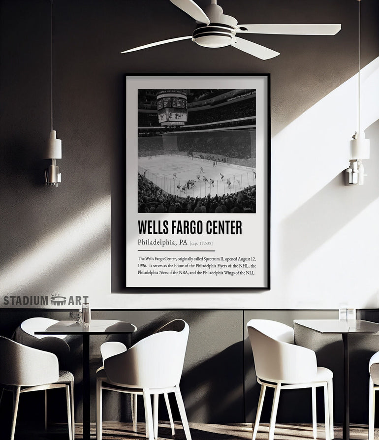 Wells Fargo Center Print, Philadelphia Flyers Poster/Canvas, Seat View, B&W Modern Art, Hockey Wall Art Decor, Game Day Keepsake
