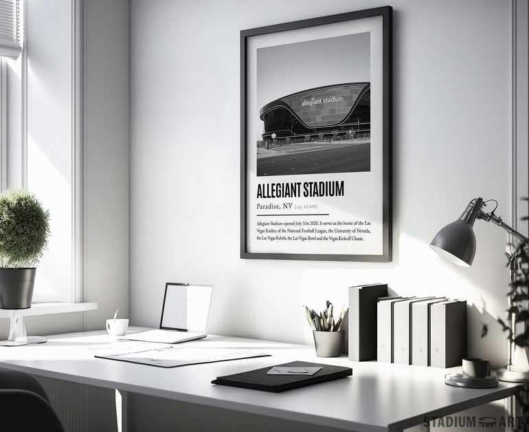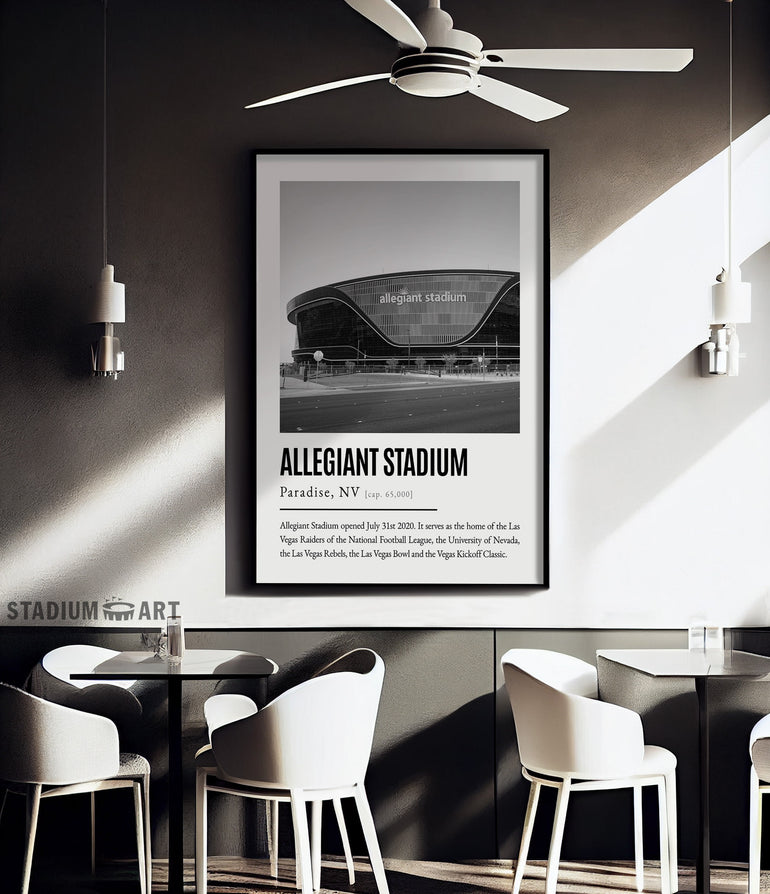 Allegiant Stadium Print, Las Vegas Raiders Poster/Canvas, Aerial View, B&W Modern Art, Football Wall Art Decor, Game Day Keepsake