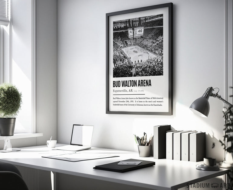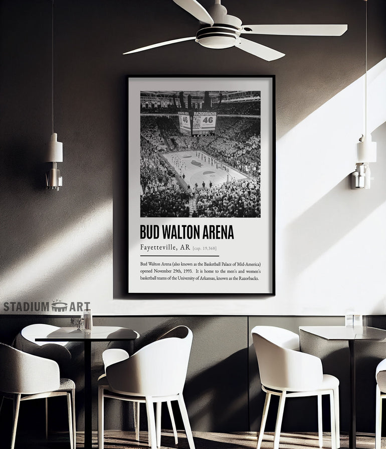 Bud Walton Arena Print, Arkansas Razorbacks Poster/Canvas, Seat View, B&W Modern Art, Basketball Home Decor, Game Day Keepsake