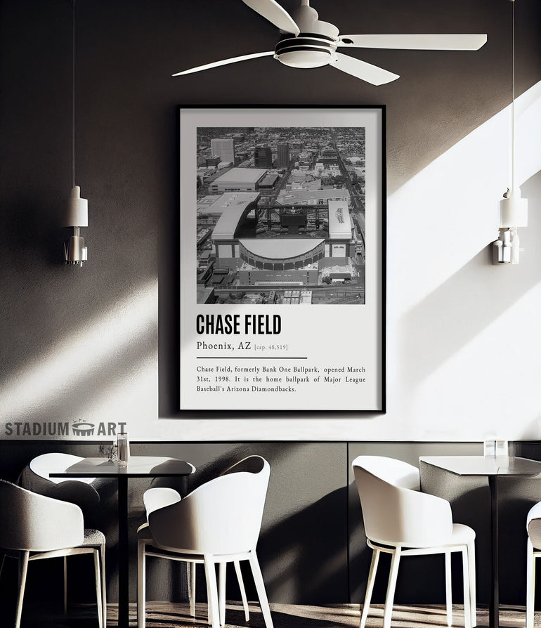 Chase Field Print, Arizona Diamondbacks Poster/Canvas, Aerial View, B&W Modern Art, Baseball Home Decor, Game Day Keepsake