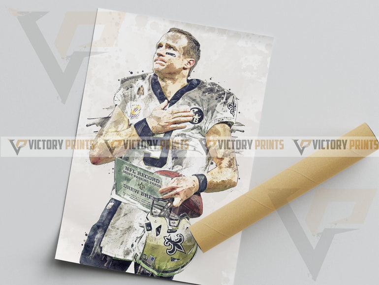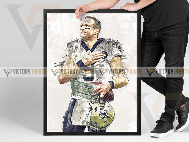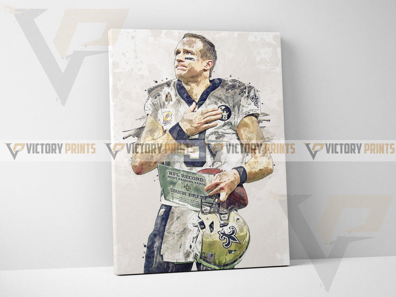Drew Brees Passing Record Poster/Canvas | Football Man Cave Art, Sports Room Decor, Digital Files Available