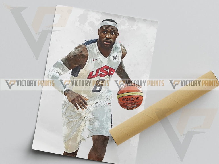 Lebron James Team USA Poster/Canvas | Basketball Man Cave Art, Basketball Sports Room Decor, Fan gifts, Digital Download