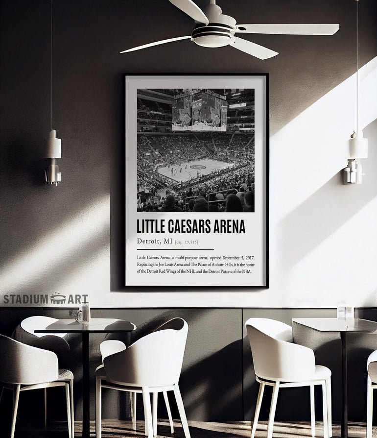 Little Caesars Arena Print, Detroit Pistons Poster/Canvas, Seat View, B&W Modern Art, Basketball Home Decor, Game Day Keepsake