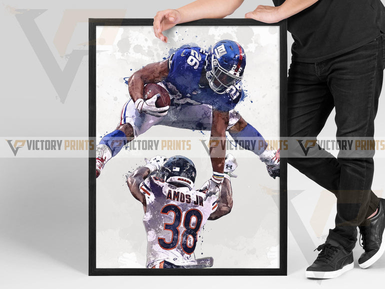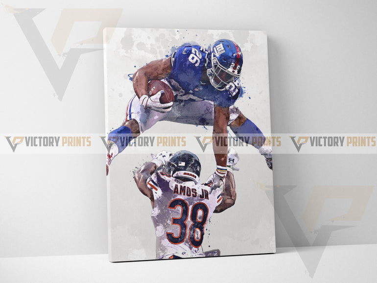 Saquon Barkley Hurdle Poster/Canvas | Football Man Cave Art, Sports Room Decor, Digital Files Available