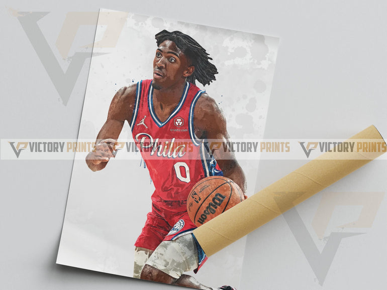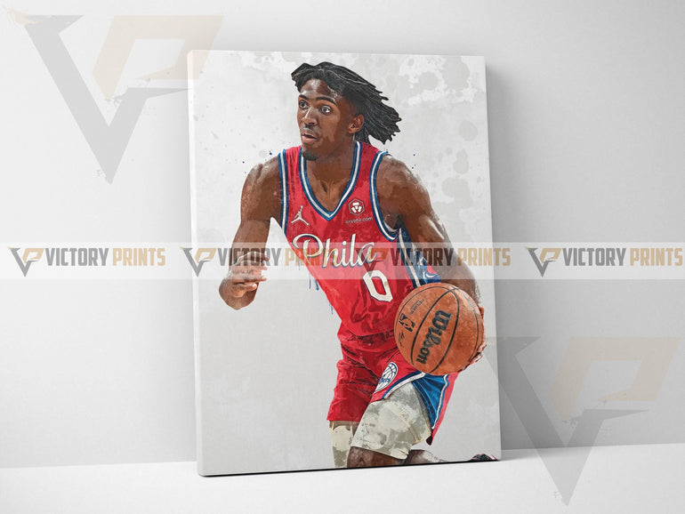 Tyrese Maxey Poster/Canvas | Basketball Man Cave Art, Basketball Sports Room Decor, Fan gifts, Digital Download