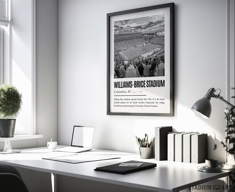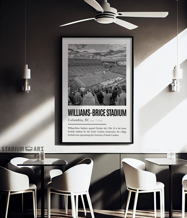 Williams-Brice Stadium Print, South Carolina Gamecocks Poster/Canvas, Seat View, B&W Modern Football Wall Art Decor, Game Day Keepsake